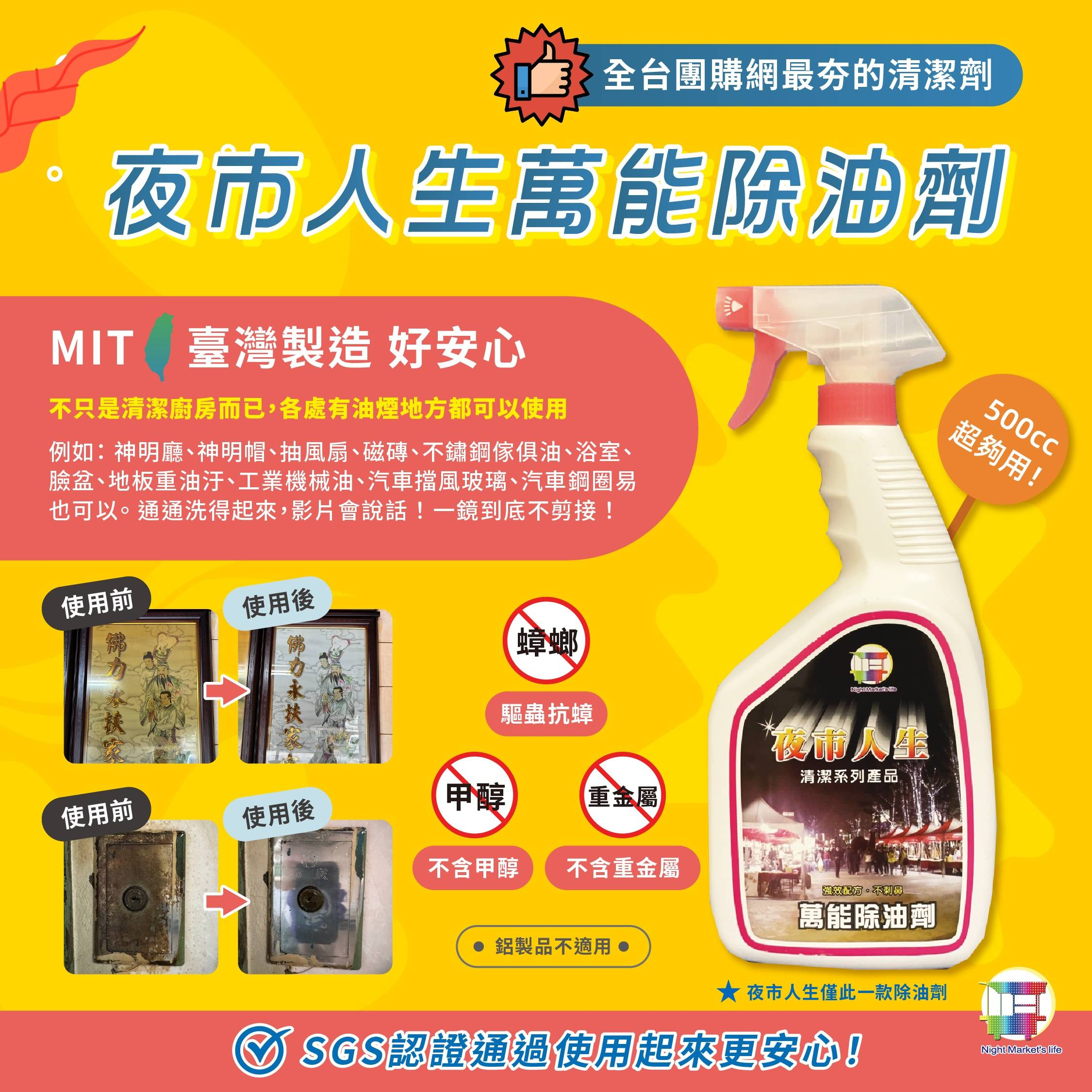 25分鐘前台灣製【夜市人生萬能除油劑】好用不傷手 買三送三 6組分享裝NT$1380(單瓶NT$230)