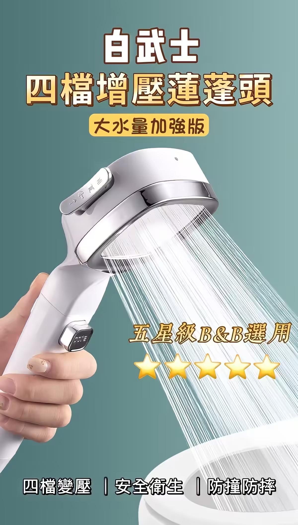 12分鐘前四檔調節【白武士增壓蓮蓬頭】會馬殺雞的蓮蓬頭 沖掉一天的疲憊 - 超值團購【3入組】免運 僅需 -NT$1480