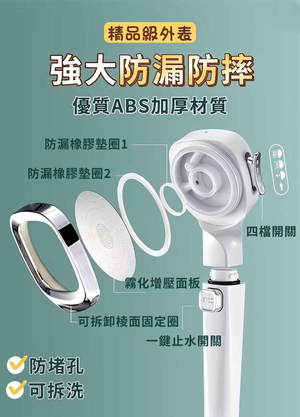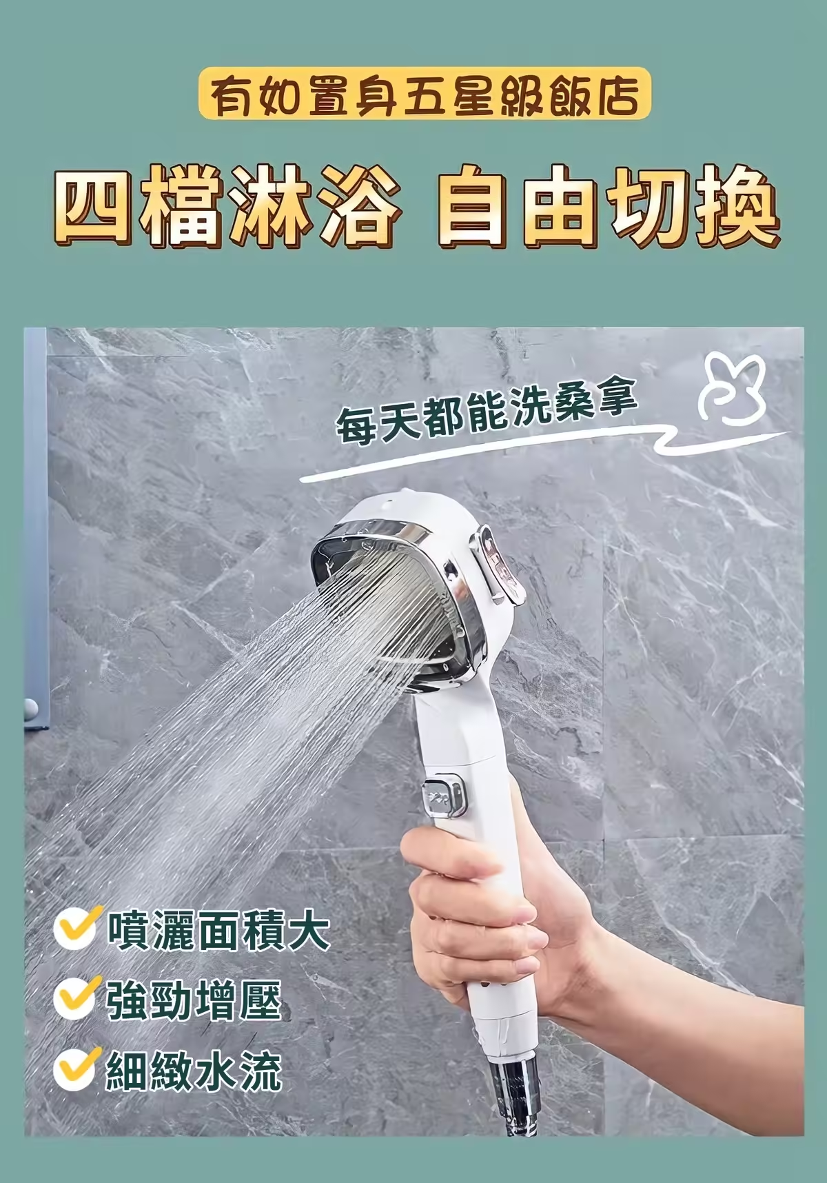 5分鐘前四檔調節【白武士增壓蓮蓬頭】會馬殺雞的蓮蓬頭 沖掉一天的疲憊 - 活動體驗【1入組】699+運費80 -NT$779