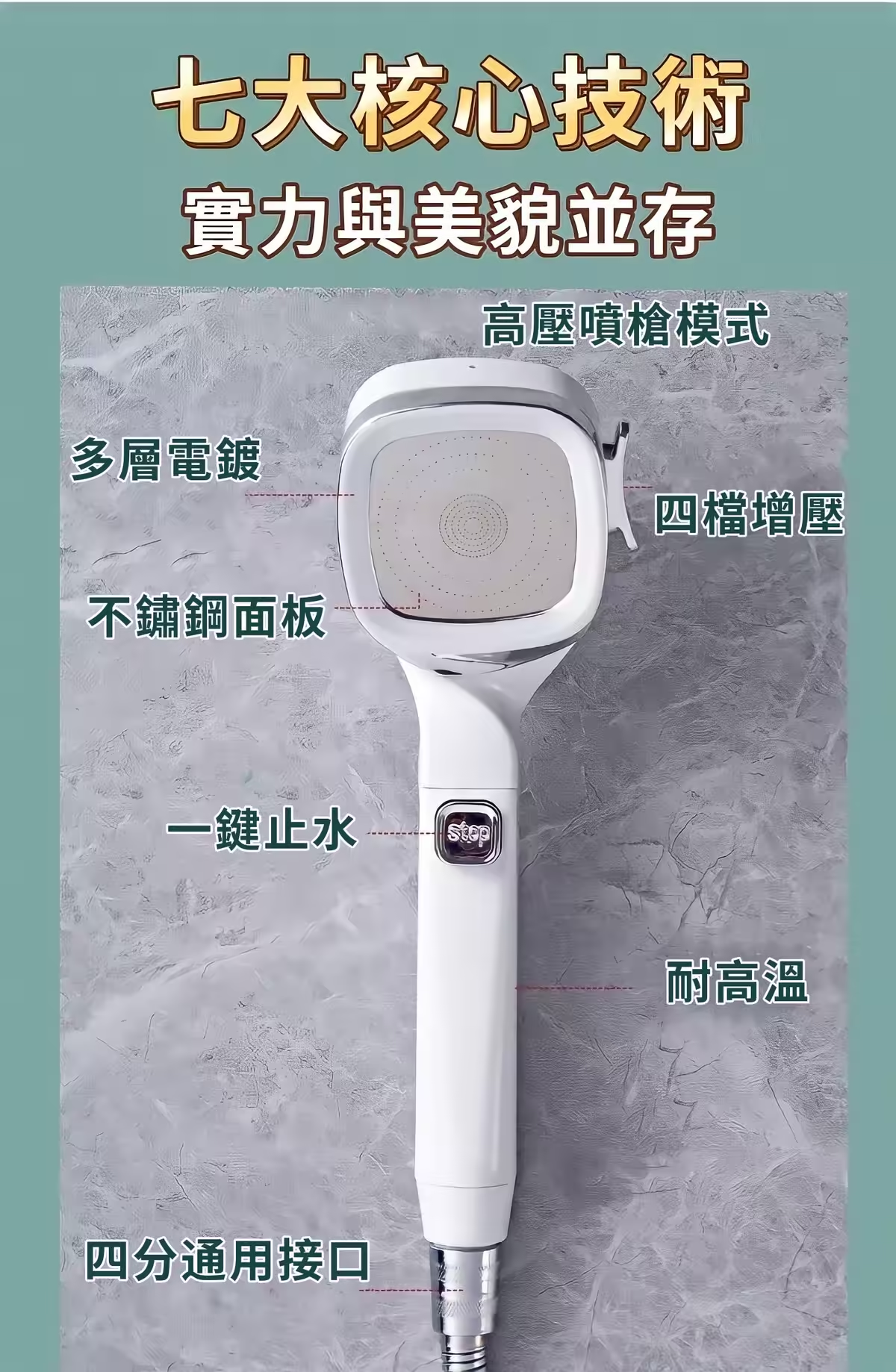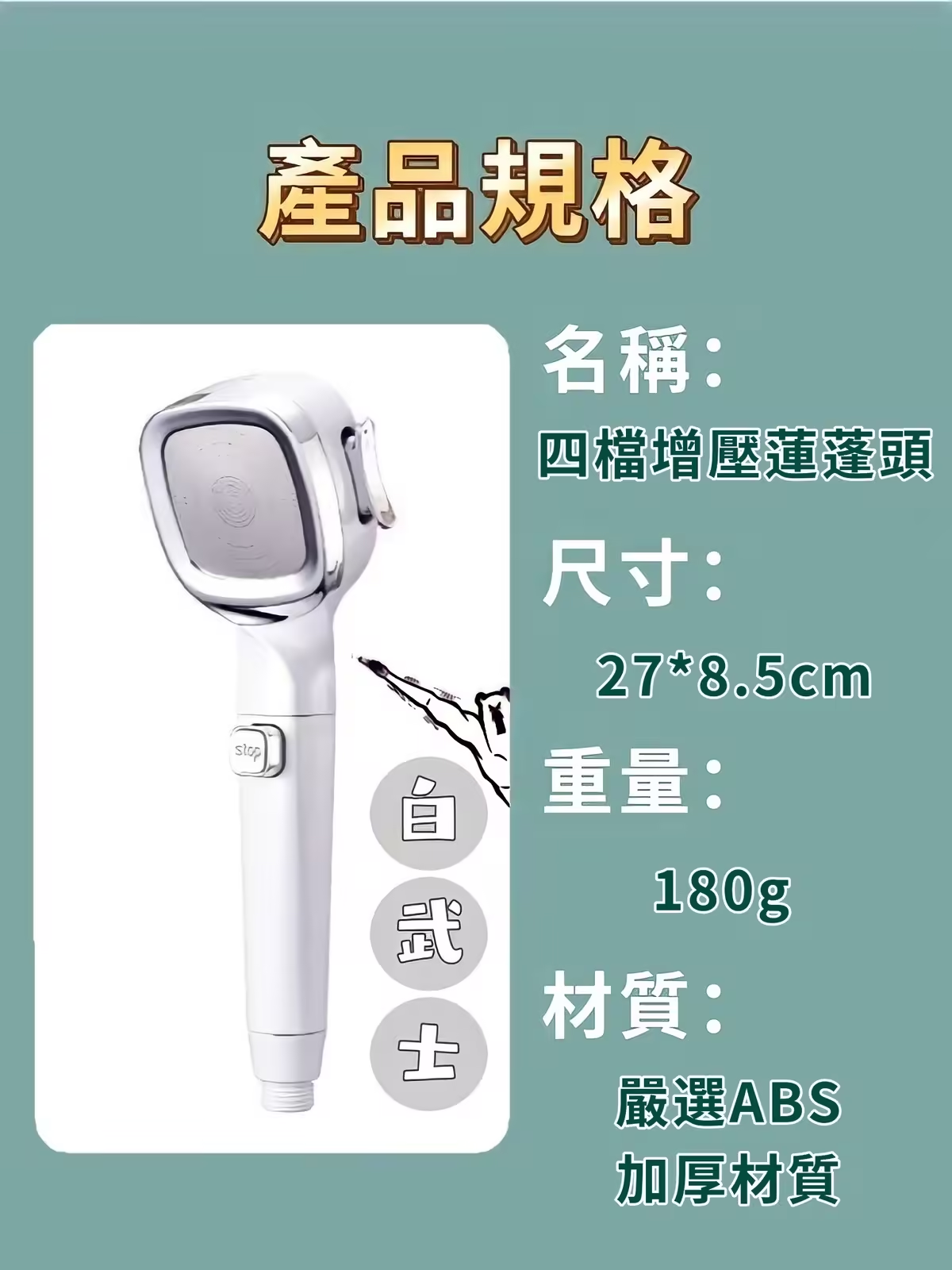 7分鐘前四檔調節【白武士增壓蓮蓬頭】會馬殺雞的蓮蓬頭 沖掉一天的疲憊 - 活動體驗【1入組】699+運費80 -NT$779