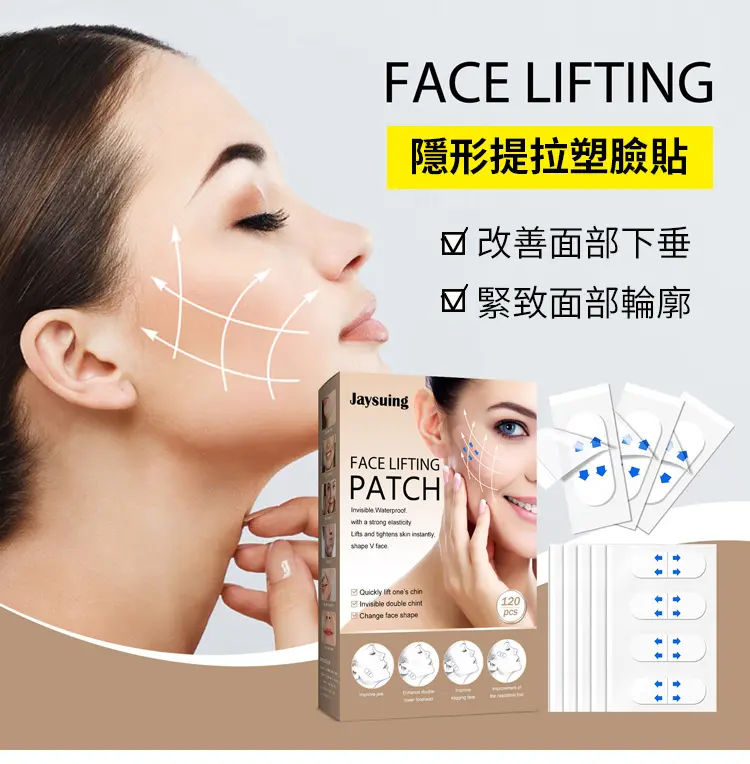 12分鐘前面部提拉瘦臉貼 提拉緊緻,快速擁有小V臉,美美噠超隱形,真的好好看 - 【體驗組】一盒(120貼) 免運費-NT$950