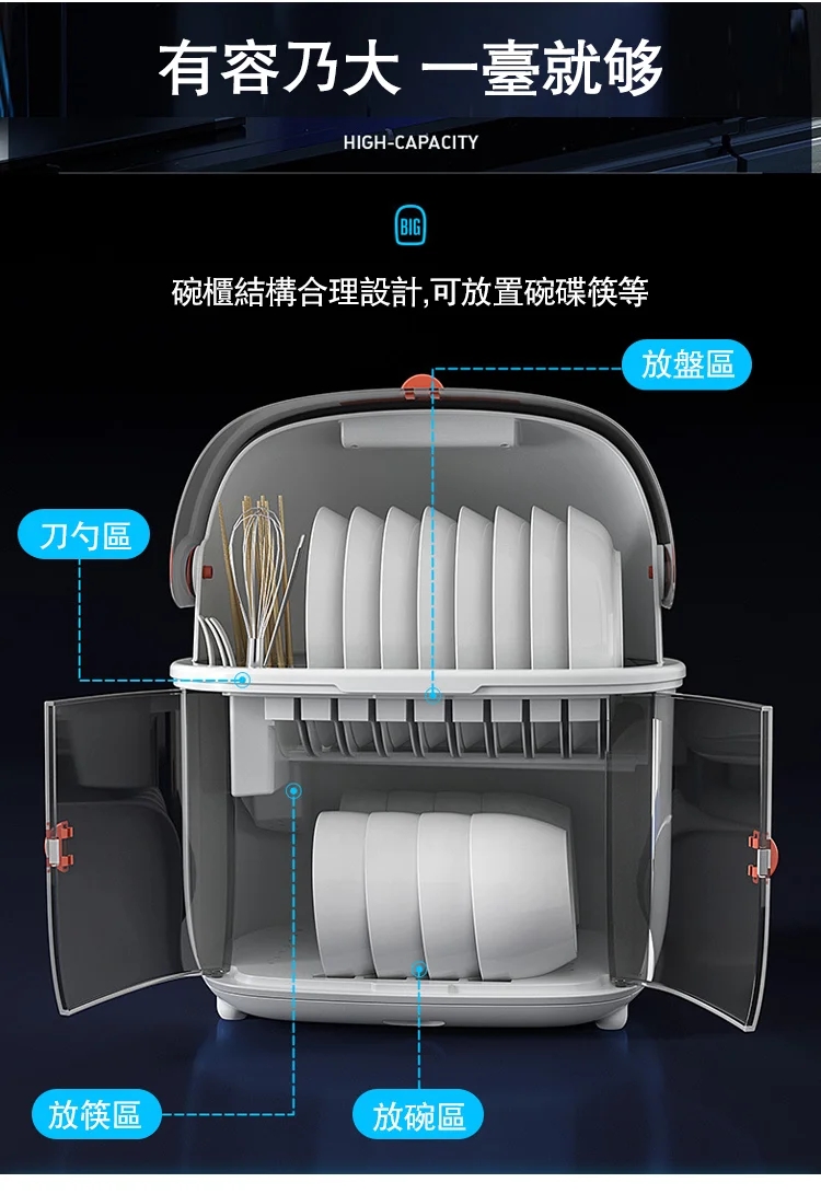 2分鐘前智能家用碗碟收納瀝水紫外線消毒密封雙層碗櫃 - 一入組NT$1398 NT$ 1398