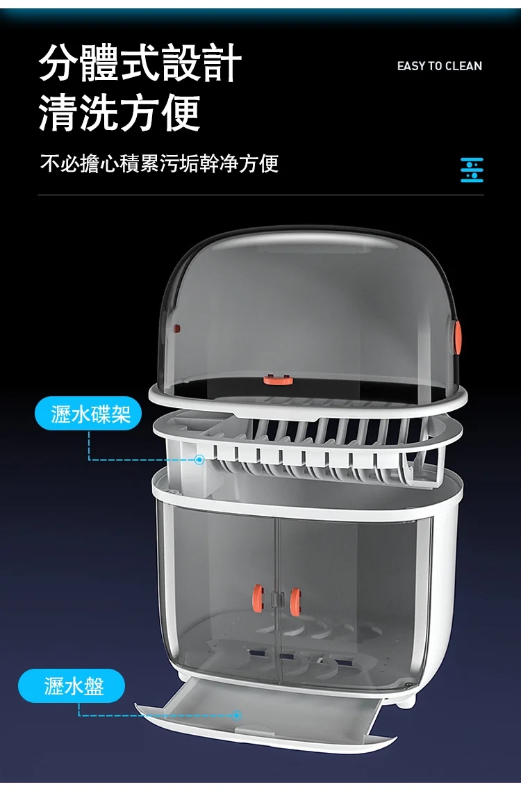 半小時前智能家用碗碟收納瀝水紫外線消毒密封雙層碗櫃 - 二入組NT$1798 NT$ 1798