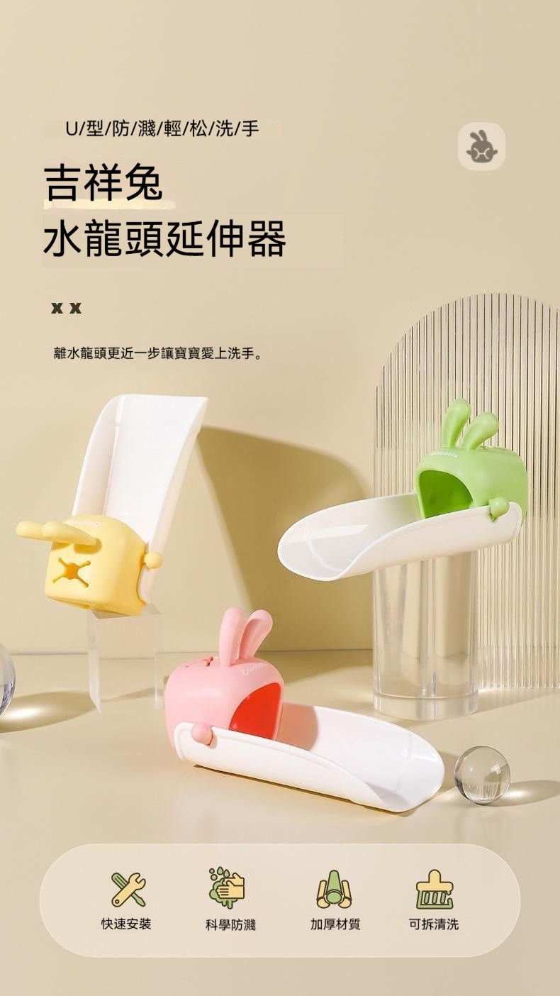 25分鐘前可愛卡通水龍頭延伸器寶寶洗手加長硅膠防濺水神器 - 家庭裝【買一送二】3入組 NT$698