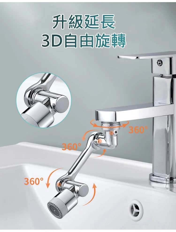 12分鐘前機械臂萬向水龍頭延長器 1080°自由旋轉,隨意伸縮 可直接漱口、沖臉、洗頭、清潔水池!防鏽防腐蝕,方便耐用! - 破盤嗨購【買三送三】6入組 僅需 -NT$1150
