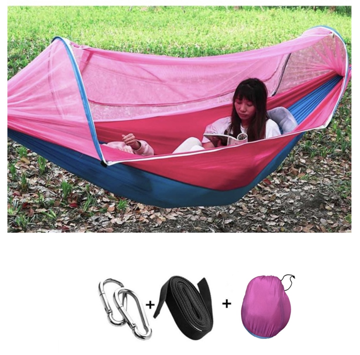 25分鐘前全自動速開戶外帶蚊帳吊床 - 【創意嘗鮮】承重700公斤 速開蚊帳吊床【帶蚊帳 三米綁繩 8號扣】/1入組NT$1298