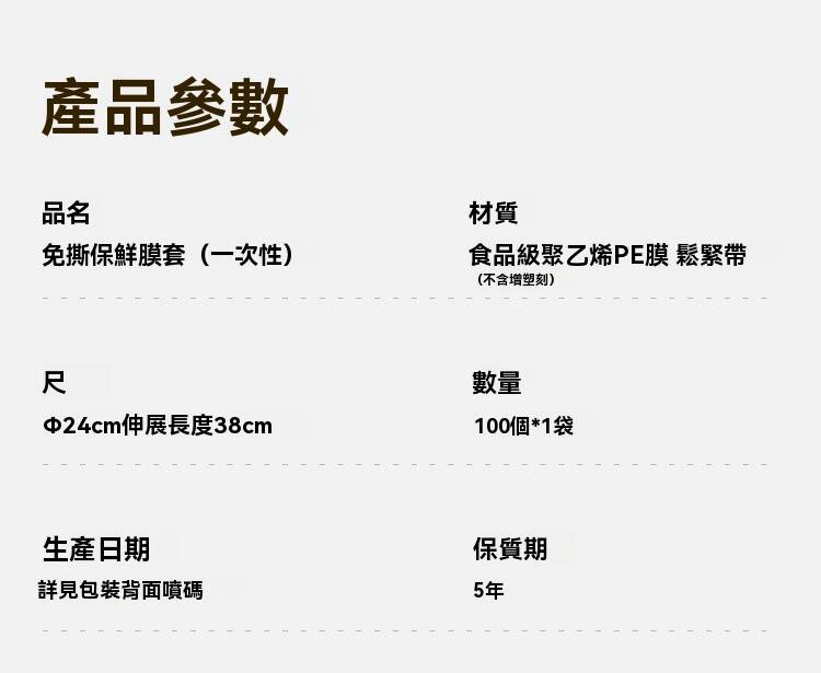12分鐘前新款保鮮膜套 食品級材質,彈力縮口,任何大小、形狀都能輕鬆套上,保鮮不跑味,方便快速,乾淨衛生,廚房必備好物! - 超夯特惠:五入組(500個)NT$998 再贈送驚喜禮品一份!-NT$998
