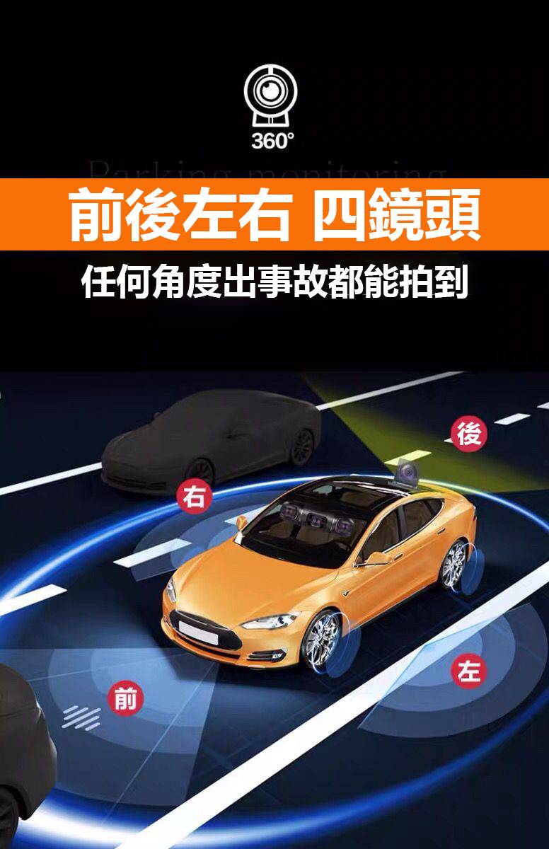 5分鐘前360°全景行車記錄儀,4個鏡頭全車覆蓋,高清雙攝,限時優惠,貨到付款! - 【限時優惠,僅需NT$1098】1組入,360°全景行車記錄儀【4個攝像頭】*1