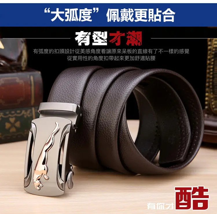 20分鐘前【官方站】男士獵豹自動扣真皮腰帶 【能用十年的真皮腰帶】 整張牛皮裁剪打造,純手工製作,耐磨耐折耐用,品質高端,彰顯男士成熟魅力