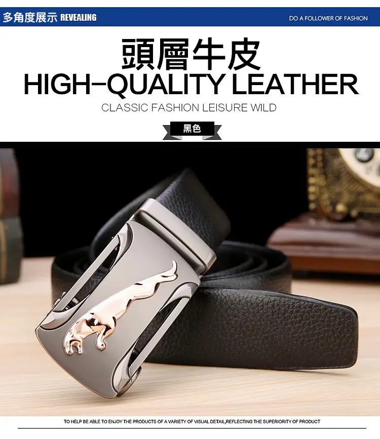25分鐘前【官方站】男士獵豹自動扣真皮腰帶 【能用十年的真皮腰帶】 整張牛皮裁剪打造,純手工製作,耐磨耐折耐用,品質高端,彰顯男士成熟魅力