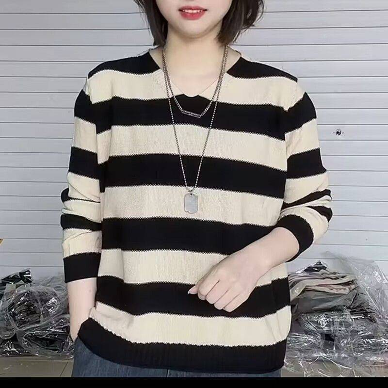 15分鐘前2024新款秋冬季寬鬆條紋針織毛衣女士打底衫 - 【團購優惠】任選4件 僅需NT$1598