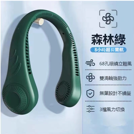 2分鐘前【24小時連續使用超長續航】#掛脖風扇 #3檔自由調節長續航 免運費 貨到付款 - 【綠色-無葉設計不饒發】