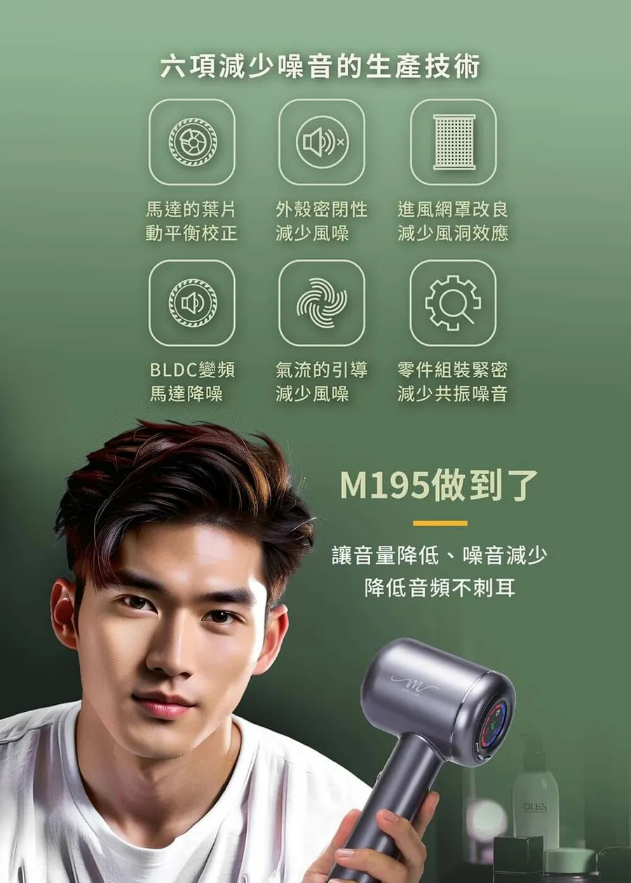 15分鐘前M195 負離子恆溫高速吹風機 乾髮護髮,一次搞定 - 優惠價一入組NT$1398