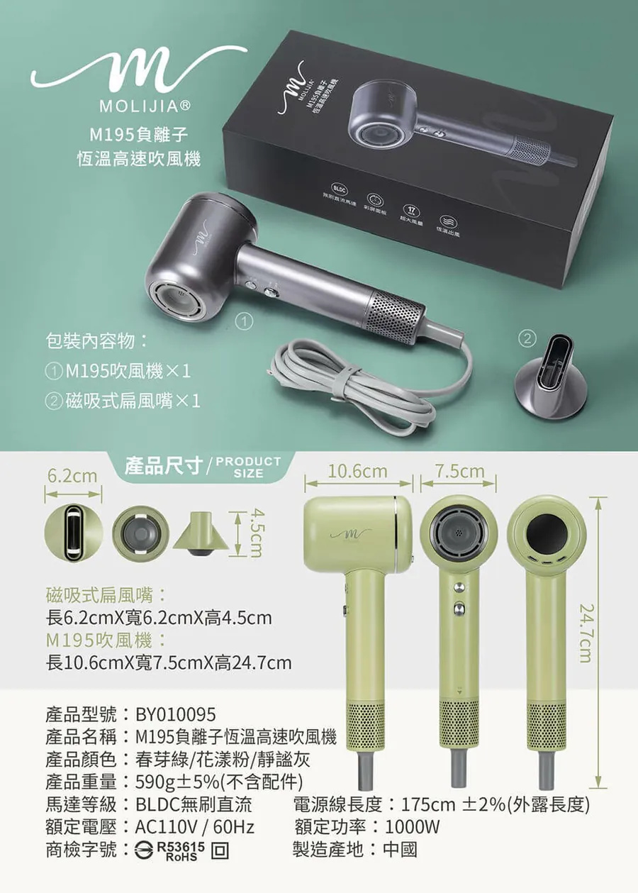 半小時前M195 負離子恆溫高速吹風機 乾髮護髮,一次搞定 - 優惠價一入組NT$1398