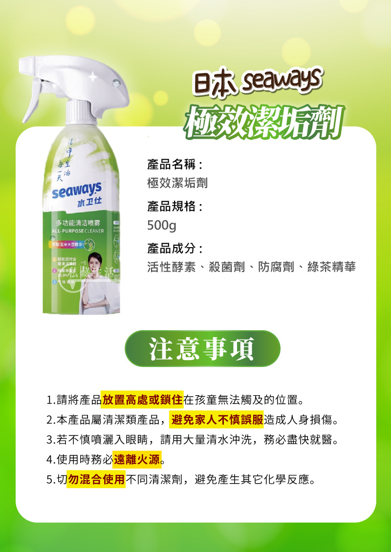20分鐘前全屋煥然一新日本瘋搶除垢劑【Seaways極效潔垢劑】極效去汙X乾淨透亮 - 極效潔垢劑【6入】再享免運!