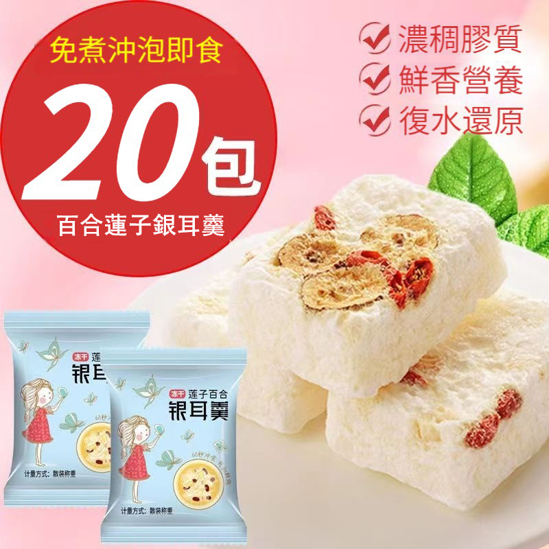 20分鐘前冻干银耳羹红枣雪梨枸杞莲子免煮速食低脂零食冲泡微甜银耳羹 - 【20包】僅需920