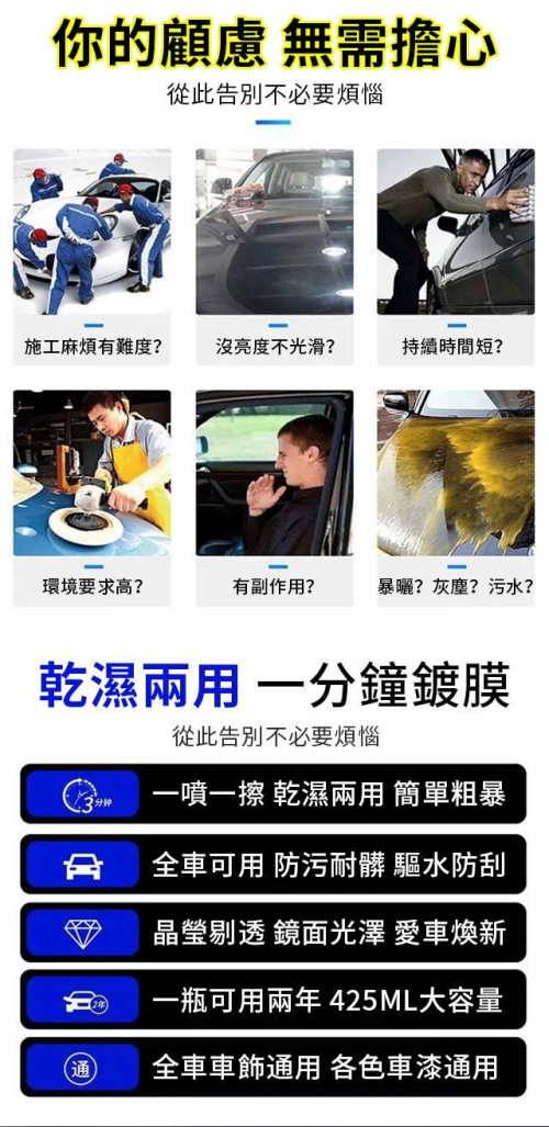 12分鐘前火爆熱銷中!台灣本土出貨,日本進口速效汽車鍍膜劑,去污+鍍膜 - 【超值優惠價9入組】贈送汽車鍍膜毛巾9條 NT$1698