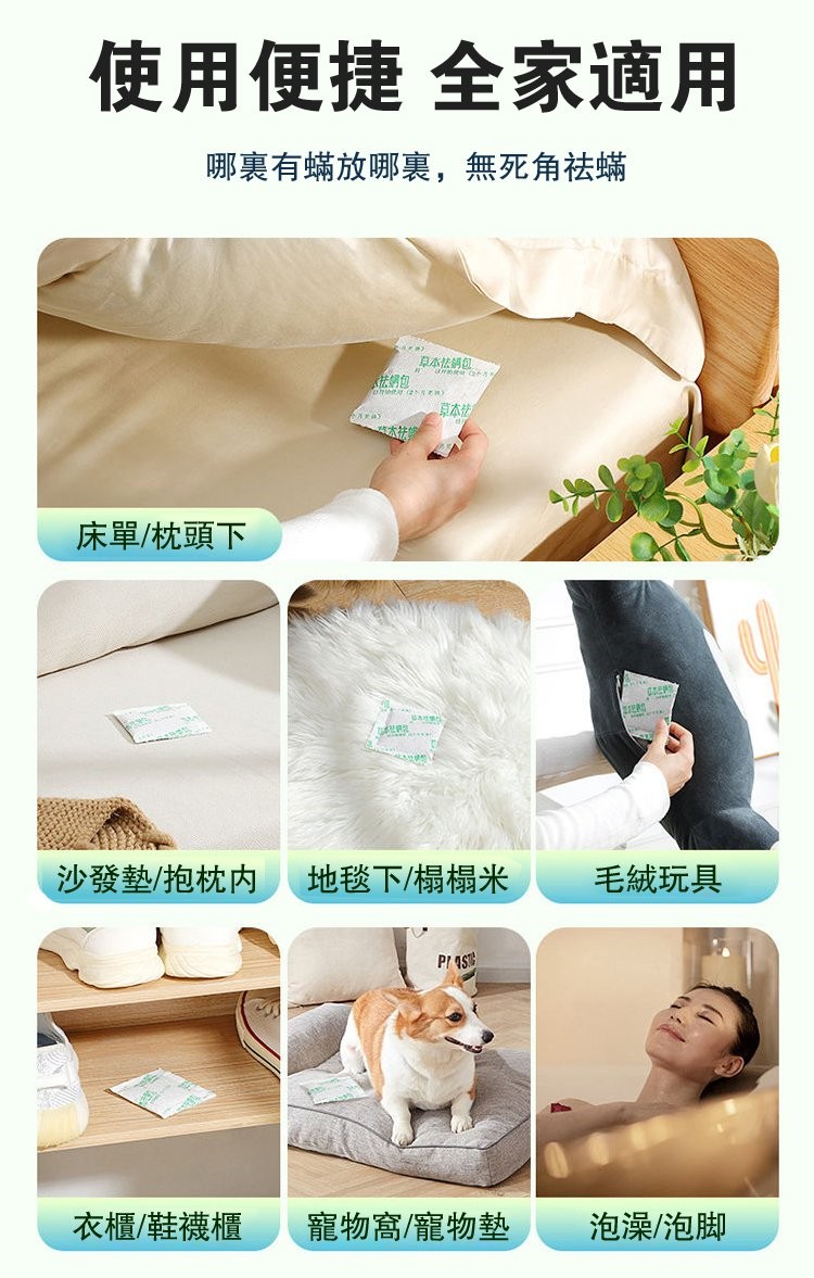 20分鐘前草本除蟎包「春夏季節」蟎蟲細菌容易滋生繁殖快,有了這款除草本除蟎包,在也不用擔心了!! - 體驗裝「買一送三」四入組NT$ 999(均價$249/盒)共40小包